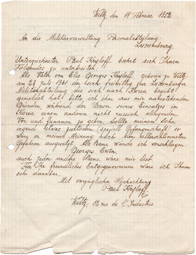 Request by Paul Kryloff (19.02.1952),
