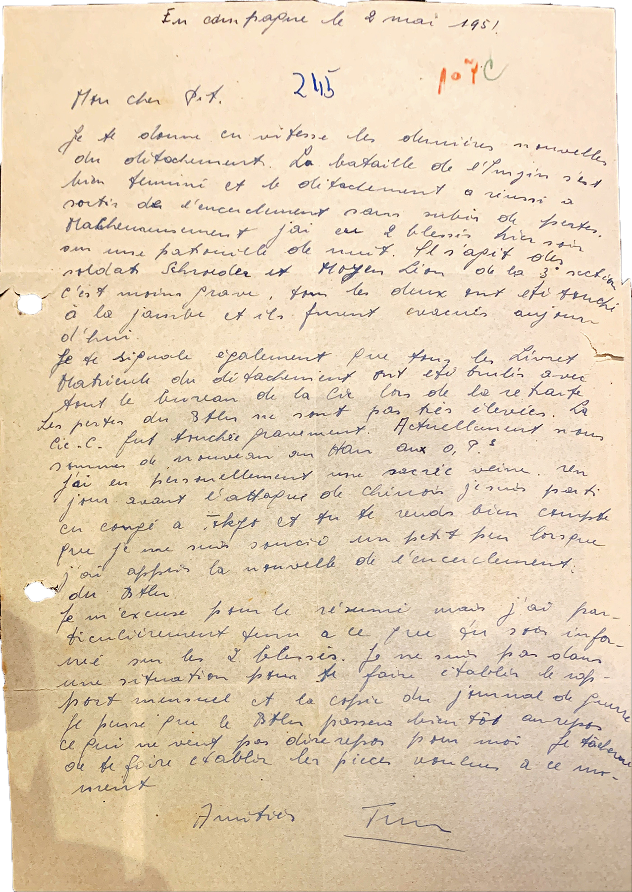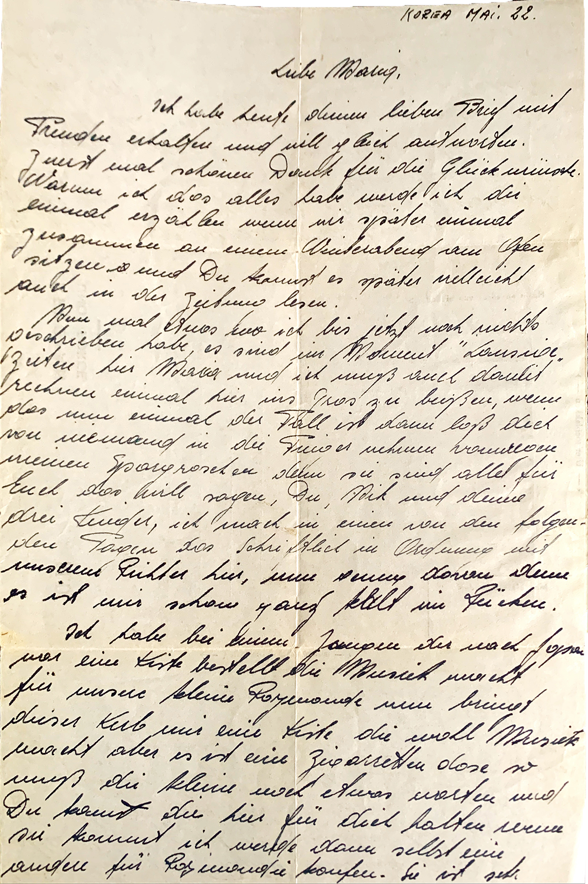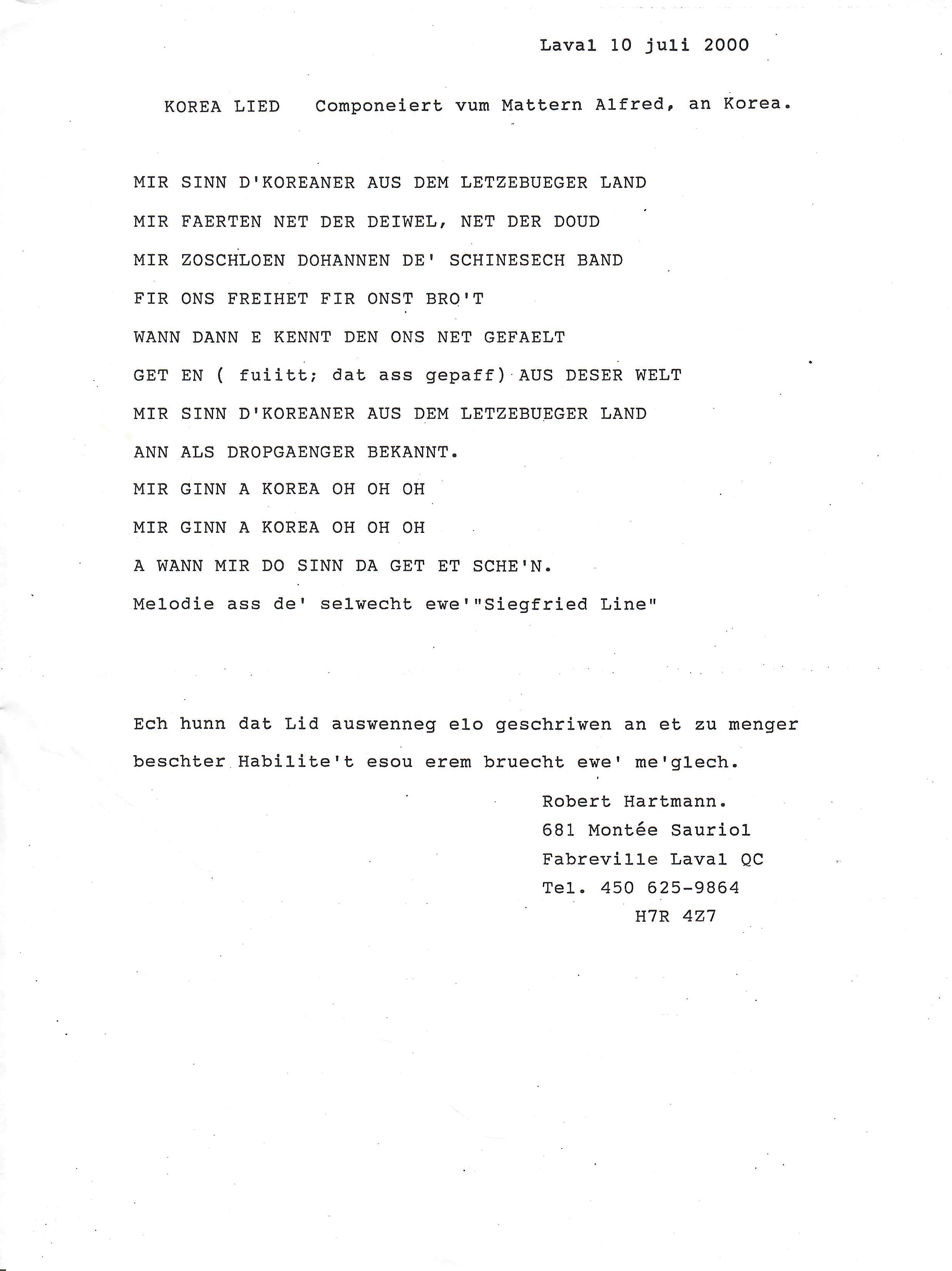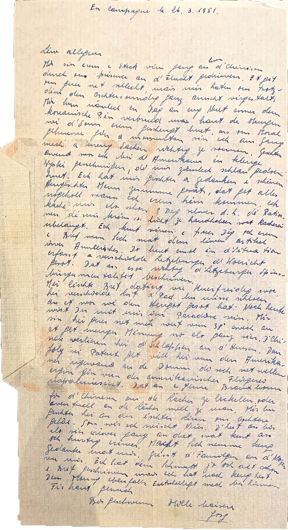 Letter of Raymond Beringer to his Family (Maria), Hesperange.