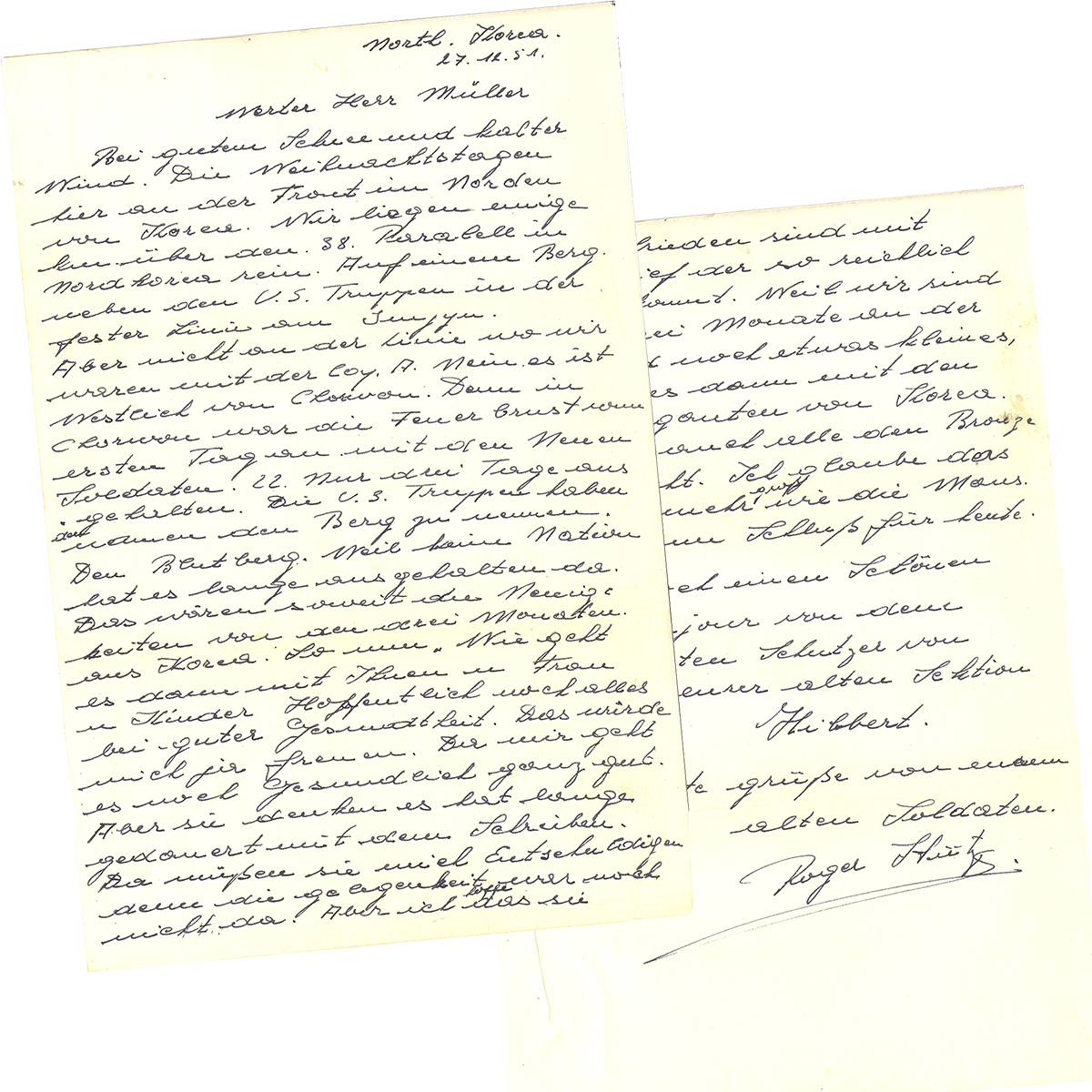 After Robert left Korea with the First contingent in late August 1951, Roger (along with three others) stayed until the Second contingent arrived in early March 1952. This letter bears witness of the blinstering cold of the Korean Winter in 1951.