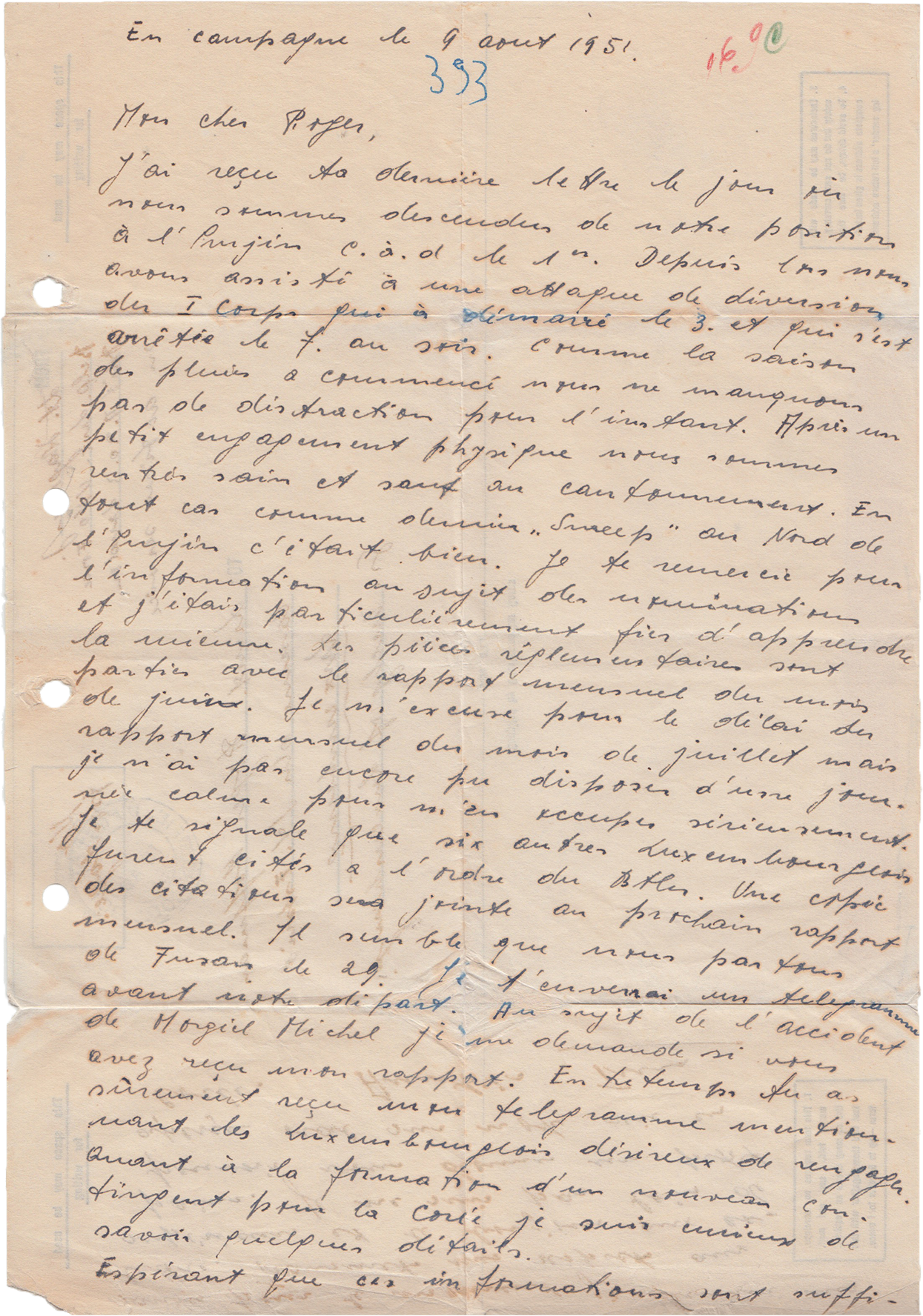 Letter of Lt. Wagener to Lt. Roger Hoffman, LuxembourgCity, 09.08.1951.